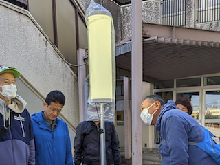 今年は、緑小に設置してある受水槽からの取水訓練を行いました。