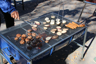 たくさんの地域の方々に参加頂き、団子を竹串にさし焼いて食べていました。