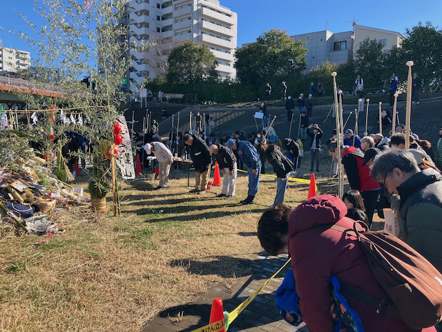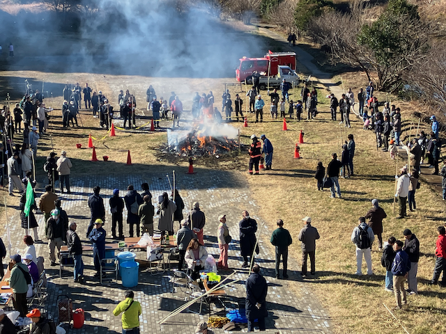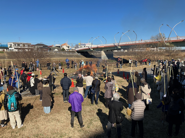 01月12日(月)鶴見川河川敷でどんど焼きが開催されました。